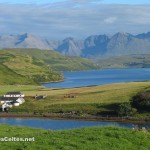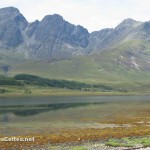 De Broadford, direction Elgol via la B8083, une petite route extraordinaire, longeant les Cuillin Hills, plus belle chaîne de montagnes de Grande-Bretagne et paradis des randonneurs. Le Loch Slapin en particulier est un véritable bijou de beauté ! Les montagnes aux formes harmonieuses qui entourent le loch se reflètent dans les eaux pures du loch, offrant un panorama saisissant de quiétude et de beauté. Tout au bout de la B8083, Elgol est un minuscule port de pêche accroché aux falaises dominant le Loch Scavaig (très fortement déconseillé aux camping-cars). La vue sur le Loch Scavaig justement est extraordinaire. De l’autre côté du loch, face à Elgol, les plus haut sommets des Cuillin Hills nappés de la brume matinale tombent de leurs mille mètres directement dans la mer, en se reflétant dans les eaux calmes du Loch Scavaig. Un panorama fascinant !