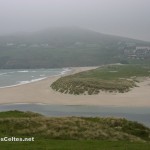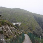 En continuant vers l’ouest on traverse les petits villages de Toormore puis de Goleen. Les paysages deviennent particulièrement beaux à partir de Goleen. Au bout d’une petite presqu’île, Crookhaven est un joli petit port aujourd’hui occupé pendant la saison estivale par les plaisanciers. Mais aux XVIIIème et XIXème siècle, Crookhaven était une zone de mouillage importante, étape des navires marchands vers les Antilles. Un peu avant l’entrée du village, un chemin permet d’atteindre à pieds Brow Head, point septentrional de l’Irlande « continentale ». Sur la route de Mizen Head, on découvre les paysages splendides de Barley Cove, une anse s’enfonçant plusieurs kilomètres dans les terres. A l’entrée de Barley Cove, une des plus belles plages d’Irlande, délicieusement déserte. A l’extrémité de la péninsule, la pointe de Mizen Head propose un panorama somptueux (par beau temps évidemment, ce qui n’a pas été mon cas …). L’accès à l’extrémité de la pointe est payant (pas donné d’ailleurs). Un chemin aménagé passe par un pont suspendu 45 mètres au-dessus des flots qui s’engouffrent entre des falaises : impressionnant … Le chemin se termine par un phare qui abrite un petit musée sur l’Histoire du phare de Mizen Head et sur la construction du Fastnet.