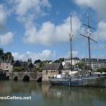 - De la place de la République, on peut rejoindre le port de Saint-Goustan par la rue du château, vieille rue pavée bordée de belles maisons du XVIIème siècle. On arrive sur le pont de Saint-Goustan, pont de pierre à quatre arches construit en 1295 et restauré à plusieurs reprises depuis.