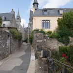 - En haute ville, l’hôtel de ville et son beffroi dominent la place de la République et font face à trois belles maisons à colombages. De la place partent plusieurs rues très commerçantes comptant là encore de nombreuses maisons à colombages relativement bien conservées : rue Jean-Michel Barré, rue du Lait, rue du Belzic, …