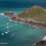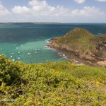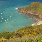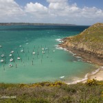 Le littoral de Plouha s’étend de l’anse de Bréhec jusqu’à la plage du Palus au sud. Petites criques et plages entourées de hautes falaises composent un paysage côtier sauvage qui se couvre d’ajoncs dès le printemps. Les principales plages sont la plage du Palus, la plage de Bréhec, la plage de Porz Moguer et la plage Bonaparte. Cette dernière, accessible via un tunnel piétonnier creusé dans la falaise, est également un site historique : pendant la Seconde Guerre Mondiale, le réseau de résistance Shelburn y organisa l’évasion de 135 aviateurs Alliés abattus dans le ciel de France par les Nazis. Mais ce qui fait la réputation du littoral de Plouha, ce sont ses falaises, les plus hautes de Bretagne, culminant à 104 mètres au-dessus des flots à la pointe de Plouha. Les falaises les plus spectaculaires de la côte se situent du côté de la pointe de Beg Hastel, éperon rocheux s’avançant dans la mer face aux ilôts du Pommier et de la Mauve, et qui offre un superbe panorama sur la baie de Saint-Brieuc. Pas loin de là, la pointe de Gwin Zegal est sans doute le site naturel le plus connu de la commune de Plouha. Au pied des falaises, abrité dans une crique, on peut y voir l’un des rares mouillages à pieux de Bretagne et même de France (il en existe un autre à Porspoder dans le Finistère). Ce type de mouillage remonte au Moyen-Age. Des troncs d’arbre de 8 à 10 mètres de haut sont plantés avec leurs racines dans le sable, des pierres consolidant la base de chaque arbre. L’ensemble forme une petite forêt de mâts auxquels s’amarrent les embarcations. Un sentier permet de descendre du sommet des falaises jusqu’au mouillage. Mais soyez prudents, l’érosion dégrade le sentier et son accès est parfois fermé. Pas de danger par contre sur le GR34 qui longe la côte et constitue sans aucun doute le meilleur moyen d’apprécier pleinement ces paysages spectaculaires.