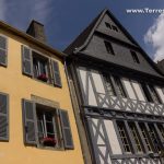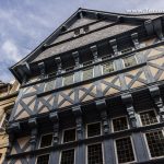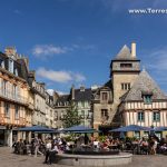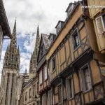 - On a beaucoup de plaisir à se promener dans les rues commerçantes du Vieux Quimper, à sauter de place en place, faire une pause pour manger une crêpe ou boire un verre, admirer les maisons à colombages qui ont survécu parmi les élégantes maisons de pierre. La rue la plus connue est la rue Kéréon qui abritait autrefois la corporation des cordonniers (kereon en breton). Cette grande artère commerciale du centre ville de Quimper s’étend aujourd’hui de la place Médard jusqu’à la place Saint-Corentin et séduit par son point de vue permanent sur les flèches de la cathédrale Saint-Corentin. Elle abrite quelques belles maisons à colombages au croisement avec la rue Saint-François. Les autres grosses concentrations de maisons à colombages du Vieux Quimper se trouvent du côté de la joliment nommée place au beurre (rue du Sallé, rue du lycée, rue du Guéodet, …) et de la belle place Terre au Duc (rue Saint-Mathieu) plus proche du Steïr. Au total le Vieux Quimper compte près de 40 maisons classées sur la liste des monuments historiques.