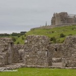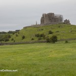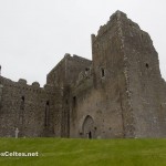 Étonnant piton rocheux en plein milieu d’une plaine, du genre à inspirer des légendes … Il se trouve justement qu’on prête au Diable la création de cette étrange colline : alors que Saint-Patrick s’apprêtait à construire une église dans la Golden Vale, le Diable aurait, de dépit, vomi un rocher qu’il venait d’arracher dans les Slieve Bloom Mountains (comté de Laois, au nord du Tipperary). Au IVème siècle, une première forteresse (Castel of the Kings) fut construite sur le piton rocheux, un emplacement idéal pour surveiller la plaine du Tipperary. Au siècle suivant, la forteresse devint la résidence des rois de Munster, une des provinces historiques d’Irlande. Saint-Patrick y baptisa le roi Aengus en 450, ce qui explique sans doute qu’on appelle également ce site le « rocher de Saint-Patrick ». On raconte même qu’à l’occasion de ce baptème, Saint-Patrick planta sa crosse dans le pied du roi Aengus, mais celui-ci ne broncha pas, croyant que cela faisait partie du rite ! La forteresse reste pendant des siècles la résidence des rois du Munster (en particulier de Brian Boru au XIème siècle) jusqu’à ce qu’elle soit cédée à l’Eglise en 1101 par le roi Murtagh O’Brien. C’est de cette époque que datent les impressionnants édifices qu’on peut admirer aujourd’hui (malgré les ravages causés en 1647 par Oliver Cromwell, une fois de plus).