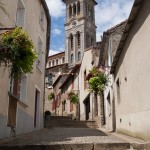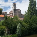 - Retour vers le centre-ville en revenant sur nos pas le long de la rivière. Traversée du Pont de la Vallée puis on continue tout droit dans la rue qui grimpe jusqu’au viaduc. En face, l’église de la Trinité et le couvent qui lui est accolé dominent le domaine La Garenne – Valentin, jardins en terrasse qui descendent vers la Moine.
