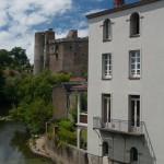 - A gauche, les halles s’ouvrent sur une rue au bout de laquelle on rejoint le château de Clisson. On peut alors prendre à gauche et rejoindre les bords de la Sèvre Nantaise en descendant un escalier à pic surnomme « l’échelle du château ». Mais on peut aussi prendre à droite pour contourner le château et l’admirer par son autre façade, avec en prime une superbe vue sur la ville et la vallée. Le château de Clisson a été construit par Guillaume de Clisson au 13ème siècle et a été fortifié au fil des siècles, ce qui en fait un véritable catalogue de l’architecture militaire en France du 13ème au 18ème siècle. Le château peut se visiter.