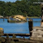 En amont du Pont du Bonhomme sur la rive droite (côté Lanester), le cimetière de bateaux de Kerhervy occupe le fond d’un méandre du Blavet. C’est pendant la guerre 39-45 que des pêcheurs de Groix, partis rejoindre la France Libre, ont caché ici leurs thoniers pour qu’ils ne tombent pas entre les mains des allemands. Mais nombre d’entre eux ne sont pas revenus et leurs bateaux sont restés finir leur vie dans la vase. C’est ensuite devenu une habitude de laisser pourrir les bateaux en fin de vie, chose qui est aujourd’hui heureusement interdite. Petit conseil si vous voulez admirer le cimetière et prendre quelques photos : équipez-vous de bottes pour pouvoir approcher des épaves … et ne venez pas à marée haute car les épaves seront recouvertes ! L’anse de Kerhervy abrite également une scène qui accueille chaque année fin juin un festival de théâtre.