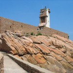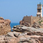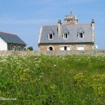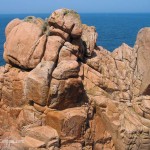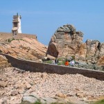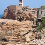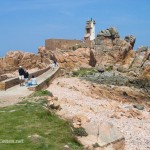 - Tout au bout de l’île nord, la pointe du Paon est sans aucun doute le site le plus spectaculaire de l’île. Au bout des landes battues par les vents d’ouest, un phare s’érige au milieu de chaos de granit rose qui apportent une atmosphère magique au site. Le phare, détruit par les allemands, a été reconstruit entre 1947 et 1949 et s’intègre particulièrement bien au paysage. C’est de la mer qu’on apprécie le plus le site, en faisant le tour de l’île (voir plus bas). Par gros temps le spectacle doit être exceptionnel ! Une légende est rattachée à cette pointe, plus précisément au gouffre qui se cache derrière le phare. Les jeunes filles en quête d’amour y venaient une fois par an jeter une pierre. Si la pierre tombait directement dans l’eau, elles se marieraient dans l’année. Sinon, elles devraient attendre autant d’années que la pierre faisait de ricochets sur les parois du gouffre avant d’atteindre l’eau …