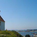 - Située au sommet d’un tertre rocheux de 26 mètres de haut accessible par un escalier, la chapelle Saint-Michel domine l’île et offre un panorama magnifique, en particulier sur la côte ouest de l’île, le chenal de Kerpont et ses nombreux îlots, comme l’île Béniguet et l’île Grouezen. La chapelle a été construite en 1852. Peinte en blanc et couverte de tuiles rouges (une véritable anomalie en Bretagne !), elle est un bon repère pour les marins qui approchent Bréhat.