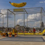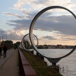 - Le long de la Loire et du hangar à bananes, les Anneaux de Buren sont une oeuvre de l’artiste Daniel Buren. C’est une des oeuvres pérennes inaugurées lors de la biennale d’art contemporain Estuaire en 2007. L’oeuvre comprend 18 anneaux couleur argent disposés les uns les autres à égale distance le long du quai des Antilles. À travers ces anneaux, le visiteur bénéficie de belles perspectives sur la Loire et sur le centre de Nantes. La nuit les anneaux s’illuminent en alternance en rouge, bleu ou vert. Ces anneaux sont une référence aux Anneaux de la Mémoire, une association qui s’est donnée pour objectif de faire connaître au grand public l’histoire de la traite négrière, « commerce » dans lequel le port de Nantes était un des plus actifs.