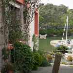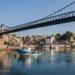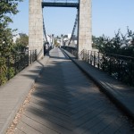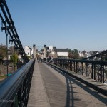Si la première image qu’on a du Bono est souvent la vue sur le port depuis le pont Joseph Le Brix sur la RD 101 de Baden à Auray, l’image qui symbolise souvent Le Bono est son vieux pont suspendu qui domine le port. Ce pont de 97 mètres de longueur est classé monument historique depuis 1997. Avant que sa construction ne soit décidée par le conseil municipal de la ville d’Auray en 1835, un chaland permettait de traverser la rivière. L’inauguration du pont en 1840 permet à de nombreuses personnes des communes environnantes de plus facilement traverser la rivière pour se rendre aux marchés et aux foires de la ville d’Auray. Mais le temps et les intempéries mettent à mal la solidité du pont qui doit subir des réparations régulières. La circulation sur le pont est même limitée et parfois interdite entre 1865 et 1869. En 1870 le pont est fermé pendant 18 mois pour le moderniser en adoptant les évolutions techniques considérables intervenues dans la construction des ponts suspendus depuis 1840. Le pont subira à nouveau des réparations en 1925. Dans les années 60 le pont n’est plus adapté à l’accroissement de la circulation automobile et un nouveau pont est ouvert en 1969 en aval sur la rivière du Bono : le pont Joseph Le Brix qu’emprunte aujourd’hui la RD 101. Le vieux pont suspendu est dès lors réservé à la circulation des piétons et des vélos. Mais l’usure du temps fait toujours son effet et le pont est fermé pour des raisons de sécurité dans les années 90. Il faudra attendre une restauration complète en 2006 pour que le pont soit à nouveau ouvert au public et que les promeneurs puissent jouir de la belle vue sur la rivière et le port du Bono !