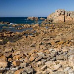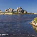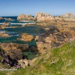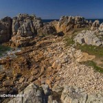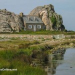 Sur une presqu’île au nord de Tréguier, Plougrescant propose les paysages parmi les plus beaux de la Côte de Granit Rose. Ici le développement du tourisme ne s’est pas accompagné de la folie des promoteurs et les paysages ont gardé un aspect sauvage qui fait le régal des nombreux visiteurs qui viennent se délecter devant le spectacle offert par Dame Nature en ces lieux ! C’est un régal de parcourir les petites routes sinueuses de campagne, de traverser les landes qui descendent doucement vers la mer qui découvre à marée basse d’innombrables petits ilôts de granit rose. Et quand l’Humain laisse des traces dans le paysages, ce sont des hameaux superbement fleuris ou des petites maisons de pierre coincées dans les rochers. Deux sites naturels partagent les faveurs des touristes qui visitent la région : le site du Gouffre et la Pointe du Château. C’est en particulier sur le magnifique site du Gouffre que se trouve la célèbre Maison de Plougrescant, petite maison coincée entre les rochers et qui a servi de support à de nombreuses promotions du tourisme en Bretagne et dans les Côtes d’Armor. Ces sites font partie des nombreux sites protégés par le Conservatoire du Littoral. Comme d’habitude, attention à ne pas quitter les sentiers balisés pour préserver cette nature extraordinaire …