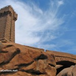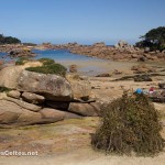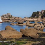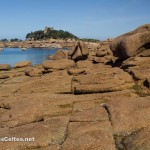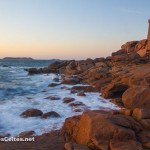 Sur la commune de Perros-Guirec, Ploumanach (ou Ploumanac’h en respectant l’orthographe bretonne) est connu dans le monde entier pour ses magnifiques chaos de granit rose. Pour mieux découvrir ce site exceptionnel, l’idéal est de partir de la plage de Saint-Guirec, en plein centre de Ploumanac’h. De la plage, on peut suivre le sentier des douaniers vers l’est : il permet d’admirer l’île de Cost-Aéres et son château de granit rose, puis il longe des chaos de granit rose aux formes magiques, jusqu’au phare de Min Ruz … évidemment construit en granit rose ! Pour profiter au maximum du site, il vaut mieux que le soleil soit au rendez-vous. Mais le site prend toute sa splendeur au coucher du soleil, lorsque les chaos réchauffés par le soleil s’embrasent ! A couper le souffle ! La beauté du site attire la foule, avec les conséquences qu’on imagine pour la végétation … Les collectivités locales ont donc décidé de protéger le site en interdisant de quitter les sentiers balisés : merci de respecter ces consignes qui n’empêchent en rien de profiter du site …