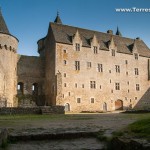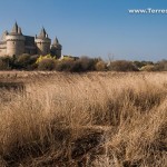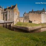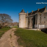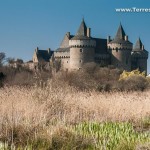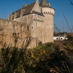 Le château de Suscinio est sans aucun doute le joyau du patrimoine bâti de la presqu’île de Rhuys. Cette imposante forteresse qui se dresse entre marais et océan a été construite par les ducs de Bretagne du 13ème au 15ème siècle. C’est Pierre de Dreux en 1218 qui posa les premières pierres du château, agrandi et consolidé par la suite par les ducs Jean 1er le Roux, Jean IV et Jean V de Montfort. Malgré ce que pourrait laisser penser son aspect imposant, Suscinio était une résidence de loisir pour les ducs de Bretagne : ils venaient y pratiquer la chasse dans la forêt qui couvrait alors une grande partie de la presqu’île. Progressivement abandonné à partir du 15ème siècle, le château tombe en ruines et est vendu à la Révolution à un marchand qui l’exploitera comme carrière de pierres. D’ailleurs c’est en tant que ruine que Prosper Mérimée fait classer le château aux monuments historiques en 1840. Lorsque le Conseil Général du Morbihan rachète le château en 1965, il n’a plus de toiture, plus de fenêtres, plus de portes, plus d’étages, plus de pont, etc… Depuis 50 ans des travaux de restauration, toujours en cours, ont rendu au château sa forme médiévale. Le château est composé de quatre grandes tours (dont deux imposantes dominant l’entrée du château) et de deux logis, joints par un chemin de ronde. L’ensemble est accessible par un pont qui traverse les douves entourant le château. Un des trésors du château est le pavement médiéval, datant entre 1330 et 1340, découvert dans une chapelle hors les murs en 1975 et présenté aujourd’hui dans les salles du château. Ces sols médiévaux (13ème et 14ème siècles) n’existaient que dans quelques édifices prestigieux et celui de Suscinio est l’un des très rares qu’on puisse voir aujourd’hui en Europe.