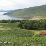 Quelques kilomètres pour se remettre de tant d’émotions ! Après Fearnmore la route vers Applecross longe la côte, coincée entre les petites falaises et les tourbières infinies. Tout au long du trajet la vue sur les îles des Hébrides Intérieures est superbe … par temps clair évidemment. Applecross est un petit village au fond d’une baie qui porte son nom. La baie est dominée par un col, le Pass of the Cattle, d’où on a une vue magique sur les îles de Rona, Raasay et Skye.