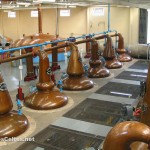 - Vient alors le temps de la distillation, qui consiste à extraire par condensation l’alcool du wash. La distillation a lieu en 2 temps : d’abord dans le wash still. Le résultat de cette première distillation est à son tour distillé dans des alambics plus petits, les spirit stills. De ces derniers sort un whisky à 57 degrés d’alcool ! Pas encore consommable évidemment … La hauteur de l’alambic de distillation a une influence sur la force du whisky : plus l’alambic est haut, plus le whisky sera doux.