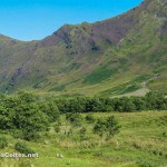 On continue sur la A87 vers Fort William. A partir de Shiel Bridge, au fond du Loch Duich, la route traverse le Glen Shiel, vallée entourée de sommets à plus de 1 000 mètres qui composent le massif du Kintail. Au nord, la chaîne des Five Sisters of Kintail culmine à 1 068 mètres, hauteur du Sgurr Fhuaran.