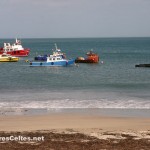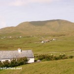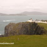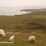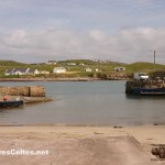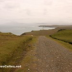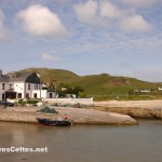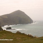 On raconte que Clew Bay, cette magnifique baie à l’ouest de Westport, compte autant d’îles que de jours dans l’année ! La plus grande d’entre elles, Clare Island, se situe à l’entrée de la baie, au large de Louisburgh. L’île mesure 8 kilomètres de long sur un peu moins de 5 kilomètres de large et est dominée par deux collines : le Knocknaveen (220 mètres) et le Knockmore (463 mètres). Avant la Grande Famine, l’île comptait 1 600 habitants, elle ne compte aujourd’hui qu’un peu moins de 150 habitants permanents, un peu plus pendant la saison estivale. Les ressources de l’île sont l’agriculture (en particulier l’élevage), la pêche, la pisciculture (l’île a été la première à faire de l’élevage biologique de saumon en Europe), le tourisme et quelques emplois de services locaux (postiers, professeurs, …). Les habitants sont très impliqués dans la gestion de l’île, puisqu’ils sont tous actionnaires d’une coopérative fondée en 1987 et qui gère la vie de la communauté. Une communauté solidaire donc. Et il en faut pour vivre dans un endroit aussi reculé et souvent inaccessible quand le temps est mauvais l’hiver !