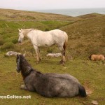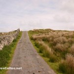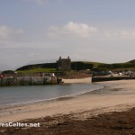Une île aussi peu peuplée ne peut être qu’un véritable paradis pour les randonneurs, et c’est effectivement le cas ! Très peu de véhicules motorisés (les rares étant de véritables épaves ambulantes !) pour le bonheur de tous les marcheurs et cyclistes ! Pour découvrir l’île, je vous invite à une boucle de 4 à 5 heures de marche partant du port et empruntant les rares routes de l’île (les cyclistes peuvent donc emprunter ce parcours). La vieille tour carrée qui domine le port est le château de Grace O’Malley (Granuaile en gaélique), une femme pirate surnommée la « Reine de l’Ouest » qui sévit dans la région au XVIème siècle. Le château a été transformé en station côtière et ne se visite pas. On quitte le port en prenant la direction « All routes » et on longe la côte sud de l’île, la plus urbanisée, avec des maisons dont les occupants jouissent d’une vue superbe sur la mer. Si vous avez de la chance (comme moi), vous croiserez peut-être quelques faisans sur la route ! Au bout de quelques kilomètres on arrive dans le hameau de Kill, où se trouve l’unique boutique de l’île. Au-dessus de la boutique, les ruines d’une vieille abbaye cistercienne du XIIème siècle côtoient l’église de l’île, toute de jaune vêtue. Le plafond de l’abbaye abrite des peintures médiévales ; quatre autres églises abritent de telles peintures en Irlande, mais celles de Clare Island sont les mieux préservées. Prendre la route qui monte vers le centre de l’île. Au sommet de la côte, on atteint alors une large vallée coincée entre les deux sommets de l’île, le Knockmore et le Knocknaveen. Paysages très sauvages, des pâturages descendent des montagnes, un garde-manger géant pour les nombreux moutons ! Puis la route redescend jusqu’à un carrefour. Prendre à gauche, en direction du phare (« Lighthouse »). Sur la route qui monte vers le phare, vous croiserez des chevaux, des ânes et bien sûr des moutons ! Au bout de 1 km, on atteint le phare de Clare Island, dans un cadre extraordinaire, au sommet de falaises vertigineuses. Le phare n’est plus en service depuis 1965, après 159 ans de services. Il servait encore récemment de B&B haut de gamme (une expérience unique !) mais il a été malheureusement récemment racheté par un particulier. Même si vous êtes irrésistiblement attiré par le bruit des vagues qui s’écrasent au pied des falaises dans un vacarme effrayant, attention à ne pas trop vous rapprocher du bord, le vent est souvent violent, le sol glissant et un accident tragique est vite arrivé … Face au phare, on a une vue superbe sur Achill Island, quelques kilomètres seulement au nord. N’hésitez pas à grimper au sommet des falaises qui dominent le phare : la montée est raide et fait mal aux mollets, mais la vue sur le Knockmore qui descend brutalement vers l’océan est magnifique. Pour rejoindre le port, on rebrousse chemin et on prend à gauche au carrefour. On traverse une large vallée aux paysages bucoliques (murets, arbustes, vaches, moutons, … ) puis on longe la côte ouest. N’oubliez pas de vous retourner régulièrement pour apprécier la vue sur toute la côte ouest de l’île et, au loin, le phare de Clare Island. Arrivée au port face à l’unique plage de l’île, avec un banc pour vous reposer avant de reprendre le ferry vers Roonagh Quay ! D’autres itinéraires de randonnées sont possibles sur l’île. Les compagnies qui assurent les liaisons avec le « continent » distribuent un fascicule proposant divers itinéraires de randonnée sur l’île. Le plus long permet de faire le tour complet de l’île, de grimper en particulier au sommet du Knockmore et de voir les ruines d’une tour napoléonienne du XIXème siècle à la pointe est de l’île.
