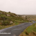 Autre balade intéressante depuis Clifden, au sud cette fois-ci : la Bog Road. Facile à rater, car mal indiquée … Quittez Clifden en prenant la direction de Roundstone et de Ballyconneely. Au bout de quelques kilomètres, la route tourne à angle droit vers un pont au fond de Clifden Bay ; prendre alors tout droit avant le pont, en direction de Lough Fadda House. La route traverse une immense zone de tourbières et de lacs, sans le moindre arbre. Au loin, on devine (dans la brume !) la silhouette des Twelve Bens. Envoûtant … La route se termine quelques kilomètres au nord de Roundstone. Un itinéraire sympa à faire en vélo, pour s’imprégner de l’atmosphère des lieux !