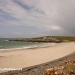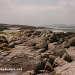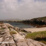 Mais quittons la ville pour découvrir les alentours de Clifden. Et d’abord une route mythique : la Sky Road. Cette route étroite fait le tour de la péninsule de Kingstown, à l’ouest de Clifden, offrant des panoramas magnifiques sur une côte découpée. Il paraît même qu’on peut y voir un des plus beaux couchers de soleil du monde … La route démarre à gauche après le supermarché Supervalue, au bout de la rue principale de Clifden. Suivre ensuite les panneaux Sky Road, en privilégiant la Upper Sky Road, plus spectaculaire. La route grimpe rapidement en dominant Clifden Bay jusqu’à un parking avec un panorama extraordinaire sur le bout de la péninsule de Kingstown. En bas de la descente, au premier carrefour, la route très étroite en face (le genre de route sur laquelle on prie pour ne croiser aucun véhicule …) mène à une jolie plage de sable blanc faisant face à Iniskturk. La Sky Road se poursuit ensuite sur la partie nord de la péninsule de Kingstown, avec des paysages moins spectaculaires, et se termine sur la N59, quelques kilomètres au nord de Clifden.