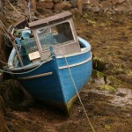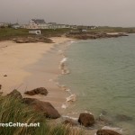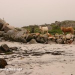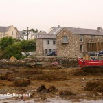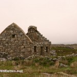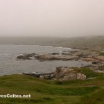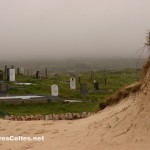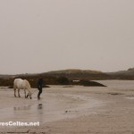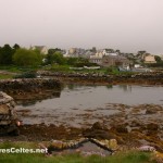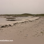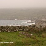 Un peu plus loin, on emprunte la R341 en direction de Roundstone, un des plus beaux villages du Connemara. Ce vieux village de pêcheurs aux rues pentues et aux maisons colorées s’est développé dans un cadre naturel magnifique, protégé par l’île de Inishnee et dominé par le mont Errisbeg (299m), dont on peut atteindre le sommet en 2 heures de marche (avec comme récompense un panorama magnifique puisque le mont est le seul relief de la région). Par temps clair (ce qui n’a hélas pas été mon cas), le port bénéficie d’une vue sur les Twelve Bens au loin. A 5 minutes de marche du centre du village, un ancien monastère franciscain abrite le Michael Killeen Park, un centre artisanal qui accueille entre autres Malachy Kearns, surnommé Malachy « Bodhran », fabricant de bodhrans de réputation mondiale. On peut visiter son atelier et bien sûr acheter un de ses fameux bodhrans (atelier ouvert en été uniquement). Roundstone est également réputé pour deux magnifiques plages de sable blanc, parmi les plus belles du Connemara : Gorteen Bay et Dogs Bay, à quelques kilomètres du village sur la route de Ballyconneely. A Gorteen Bay, un cimetière surplombant la plage offre un cadre de rêve à ceux qui y reposent pour l’éternité. Dommage que quelques mobilhomes viennent gâcher un peu le plaisir … Plus d’infos sur Roundstone : www.roundstone.ie.
