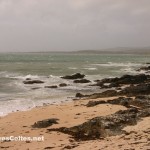 La R340 qu’on croise au bout de quelques kilomètres permet de rejoindre Carna, au coeur d’une large péninsule bordée par Kilkieran Bay à l’est et Bertraghboy Bay à l’ouest. Un peu en retrait de la R340, accessible par un petit chemin vers la gauche qu’on rate facilement, le Pearse’s Cottage est un petit musée consacré à Patrick Pearse, héros de l’indépendance irlandaise. Il venait profiter de ce cadre calme pour se reposer et écrire … Il y donnait également des cours de gaélique, une habitude dans la région ! Pour les plus pressés, possibilité de couper par une petite route pour rejoindre directement Cashel, sans faire le tour de la péninsule de Carna. Pour les autres, la R340 longe Kilkerian Bay, au pied des Cnoc Mordain (353 mètres au point culminant), jusqu’au petit port de pêche de Kilkerian, spécialisé dans la transformation des algues et du saumon. Quelques kilomètres plus loin, à la sortie du village de Ardmore, à l’endroit où la R340 tourne vers la droite à angle droit, ne pas rater la route très étroite sur la gauche qui mène au bout d’une centaine de mètres à un B&B et à une plage immense et magnifique, largement découverte à marée basse. En reprenant la R340, on arrive à Carna, renommée pour la qualité de ses chantiers navals qui construisaient les Galway hookers, voiliers traditionnels du comté de Galway. Possibilité de pêcher la truite dans les nombreux lacs autour de Carna. De Carna on rejoint Glinsk, en coupant à travers les terres via la R340 ou en longeant la côte par des petites routes. A partir de Glinsk, on longe Bertraghboy Bay : paysages superbes, côte très découpée, nombreux îlots, estran, … On prend ensuite la R342 pour rejoindre Cashel, au fond de Cashel Bay. Ce petit port peu actif est dominé par Cashel Hill, une colline de 310 mètres de haut, au sommet de laquelle on a un panorama magnifique sur Bertraghboy Bay au sud et les montagnes du Connemara au nord.