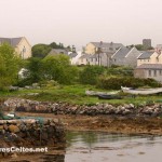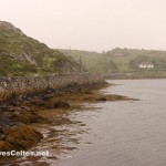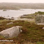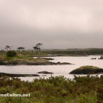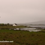Quelques kilomètres après Spiddal, la côte devient beaucoup plus découpée alors qu’on approche de Costelloe (Casla en gaélique). Juste avant Costelloe, le port de pêche de Rossaveal, le plus important du comté de Galway, est le principal point d’embarquement pour les merveilleuses îles d’Aran. Le village de Costelloe , au fond de Cashla Bay, est un village carrefour, porte d’entrée de la presqu’île de Carraroe et de trois îles reliées à la terre ferme par des ponts : Lettermore Island, Gorumna Island et Lettermullan Island. Des paysages tristes, plats et rocailleux, entrecoupés de lacs, avec de nombreuses maisons posées un peu partout. Bref, rien de spectaculaire … Ceux qui ont peu de temps pour visiter le Connemara passeront donc leur chemin ! Les paysages sont beaucoup plus intéressants quand on quitte Costelloe vers le nord, en retrouvant la R336 qui longe des landes, des tourbières et des lacs parsemés de petites îles, avec quelques arbres et maisons isolés dont on se prend à penser qu’ils ont été plantés là juste pour la photo ! Dans la région de nombreuses maisons en ruines, sans doute vestiges des vagues d’émigration qui ont vidé la région de sa population pendant plus d’un siècle après la Grande Famine. A noter que c’est depuis Costelloe qu’émet la station de radio na Gaeltachta, radio en langue gaélique.