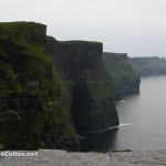 A plus de 200 mètres au-dessus des flots (214 mètres précisément pour les falaises les plus hautes), les falaises de Moher sont incontestablement les plus belles d’Irlande ! Sur les hauteurs de Liscannor, sur une longueur de 8 kilomètres, les collines vertes s’arrêtent brutalement et tombent à pic dans l’Atlantique, dans des falaises parfaitement verticales, dont la couleur noire accentue encore le côté dramatique … Le panorama donne sur les îles d’Aran, toutes proches, et par temps clair sur les montagnes du Connemara. Dans les falaises, de multiples oiseaux de mer viennent nidifier : macareux, guillemots, pétrels, cormorans, …