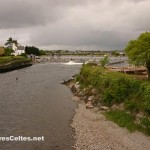 Je vous propose une visite de la ville en partant de l’imposante cathédrale Saint Nicolas qui surplombe la rivière Corrib. Une cathédrale récente puisqu’elle a été consacrée par le cardinal de Boston en 1965 ! Au pied de la cathédrale, le Salmon Weir Bridge se trouve en aval d’un barrage sur la rivière Corrib. En mai et juin, lorsque les saumons remontent la rivière, il est possible de voir des bancs entiers de saumons franchir le barrage en sautant. Pas très loin de là, derrière la mairie, des bateaux proposent des croisières sur le Lough Corrib. Un chemin aménagé part du Salmon Weir Bridge et longe la rivière Corrib jusqu’à Wolfe Tone Bridge.