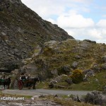 Le Gap of Dunloe, vallée attenante aux Macgillycuddy’s Reeks, compte sans aucun doute parmi les plus belles vallées d’Irlande ! Un site incontournable pour ceux qui séjournent près de Killarney. C’est un long défilé étroit entre deux collines abruptes, au sommet duquel on a un panorama superbe sur Black Valley, le Upper Lake et le Moll’s Gap. Mais c’est surtout la vallée en elle-même qui émerveille par la beauté de ses prairies, de ses tourbières et de ses petits lacs dans lesquels se reflètent les montagnes surplombant la vallée. L’entrée du site se situe près du village de Beaufort, un peu à l’écart de la route entre Killarney et Killorglin. On se gare sur un parking près du Kate Kearney’s Cottage et d’un petit coffee shop. De là, compter 3 à 4 heures de marche pour un aller-retour jusqu’au sommet du col. La marche commence par une petite montée, qui permet d’accéder à une première large vallée abritant un lac superbe qu’on longe pendant de longues minutes. Puis la route grimpe par un étroit défilé jusqu’à une seconde vallée évasée, dans laquelle s’étalent des prairies et des tourbières. La marche se termine par une nouvelle route en lacets qui permet d’atteindre le sommet du col et d’admirer le panorama. La route est bitumée, donc la randonnée ne présente pas de grosse difficulté malgré quelques portions où ça grimpe dur. En route vous pourrez admirer des paysages pleins de charme, croiser de nombreux moutons et surtout … des chevaux ! Au niveau du parking, vous risquez en effet d’être accostés par des irlandais portant la casquette et conduisant des calèches qui mènent au sommet du col. Une bonne idée pour ceux qui ne veulent pas (ou ne peuvent pas) marcher … Hors saison on peut également parcourir la vallée en voiture, mais outre le fait que la route est étroite et en mauvais état sur certaines portions, ce n’est clairement pas la meilleure solution pour profiter de l’atmosphère si particulière de cette vallée. La randonnée est très réputée, donc beaucoup de monde en été, voire même la foule parfois. Pour profiter pleinement de l’endroit, je vous recommande donc d’y aller tôt le matin.