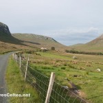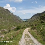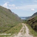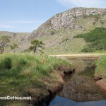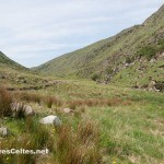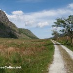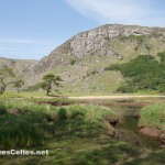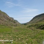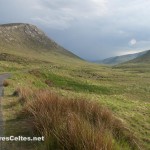 Pour terminer, un beau trajet à faire en voiture (ou en vélo pour les plus courageux) : la R254 qui longe le parc au sud entre Church Hill et Doocharry. La route traverse d’abord d’immenses zones de tourbières entourées de montagnes aux formes douces et arrondies. Puis elle tourne brusquement à 90°, permettant d’admirer sur la droite la vallée de Glenveagh jusqu’au Lough Veagh et son château tout au fond. Puis on descend à travers une superbe vallée verdoyante jusqu’au Lough Barra et ses couleurs magnifiques, jusqu’à rejoindre le petit village de Doocharry. C’est dans cette région que la Gweebarra, rivière qui se termine par un des plus beaux estuaires d’Irlande, prend sa source. Lorsque j’ai fait cette route, le ciel commençait à se couvrir de nuages sombres en début de soirée et la lumière irradiait de partout, magnifique !