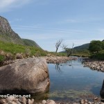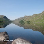 L’entrée du parc se situe sur la R251, entre Dungloe et Letterkenny. Depuis le très accueillant Visitors Centre (expositions sur l’histoire du domaine, sa géologie, sa faune, sa flore, etc … ainsi qu’une cafétéria bienvenue pour reprendre des forces après une longue marche), des navettes de bus (2 euros, tarif en juin 2008) vous emmènent jusqu’au Glenveagh Castle en longeant le Lough Veagh. Du château partent plusieurs randonnées de 45 minutes à 4 heures aller-retour. Les plus courtes se contentent de grimper la colline surplombant le château pour avoir une vue sur le lac. La plus longue permet de longer le lac (Lough Walk) puis de remonter la vallée (Glen Walk) jusqu’aux limites du parc. C’est pendant cette randonnée (qu’on ma fort judicieusement conseillée au Visitors Centre) qu’on été prises toutes les photos que vous voyez ici. En dehors de ces randonnées, le parc propose des marches avec guide, permettant de découvrir la faune et la flore du parc. Enfin, pour les marcheurs les plus expérimentés, le domaine est suffisamment vaste pour partir à l’aventure sur les sommets dominant le lac ! Mais dans ce cas, ne pas oublier de bien s’équiper (en particulier de bonnes chaussures) et de prévenir le staff du parc. Dans tous les cas, prévoir la lotion anti-midges, ils pullulent dans le coin … Dernier conseil : venez tôt, dès l’ouverture du parc (8-9h), vous aurez la vallée pour vous tout seul et c’est à cette heure-là que vous pourrez voir ces magnifiques reflets dans le Lough Veagh (si les conditions météo s’y prêtent évidemment).
