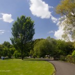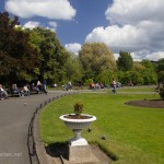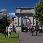 En face du centre commercial, Saint Stephen’s Green est le plus connu des parcs du centre de Dublin. Le parc a été créé en 1664 par la municipalité de Dublin sur un terrain marécageux alors situé à la limite de la ville. L’objectif de la ville était d’augmenter ses revenus en vendant les terrains autour de ce nouveau jardin. Et de fait à la fin du 18ème siècle de belles maisons géorgiennes entourent le parc. Réservé à partir de 1814 aux propriétaires des maisons entourant le parc, Saint Stephen’s Green est à nouveau ouvert au public en 1877 sur l’initiative de Sir Arthur Edward Guinness, premier baron de Ardilaun, membre de la famille Guinness propriétaire de la célèbre brasserie. Il finança également en 1880 le réaménagement du parc dans sa forme actuelle. Le parc s’étend sur près de 9 hectares et est un lieu de promenade très prisé des Dublinois, en particulier à l’heure de la pause déjeuner. Le parc abrite un lac artificiel (et ses incontournables canards !) alimenté par une petite cascade, un kiosque à musique, des bassins, des fontaines, des statues et bien sûr des arbres et arbustes, des fleurs et du beau gazon vert envahi par les Dublinois au moindre rayon de soleil ! Le long des rues entourant le parc s’alignent de nombreuses belles maisons géorgiennes, souvent en briques rouges, dont beaucoup sont ornées de ces fameuses portes colorées symboliques de Dublin. Les édifices les plus remarquables sont Iveagh House (qui abrite aujourd’hui le ministère des affaires étrangères), Newman House et University Church (siège de l’université catholique d’Irlande) au sud, Unitarian Church et le Royal College of Surgeons (la plus ancienne école de médecine irlandaise) à l’ouest, l’hôtel de luxe le Shelbourne au nord. Saint Stephen’s Green est également le terminus d’une des lignes de tramway de Dublin (Luas).