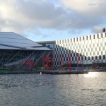 - En traversant la Liffey on arrive dans le quartier de Ringsend à l’embouchure du Grand Canal. Comme le Royal Canal, il relie la Liffey à la rivière Shannon mais via un itinéraire au sud cette fois ci jusqu’à Shannon Harbour dans le comté d’Offaly au bout de 132 kilomètres. À proximité Grand Canal Dock est un bassin portuaire au coeur lui aussi d’un vaste plan de rénovation urbaine. Sur les quais rénovés cohabitent résidences de standing, immeubles de bureaux, anciens bâtiments industriels désaffectés, … Mais la réalisation symbolique de ce quartier est le Grand Canal Theatre, un théâtre d’un peu plus de 2000 places inauguré en 2010 et qui est l’oeuvre de l’architecte polonais Daniel Libeskind.