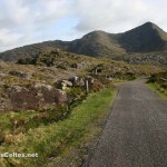 Le meilleur point de vue sur les Macgillycuddy’s Reeks se situe à l’ouest du massif, sur la route entre Beaufort et Glencar. On traverse d’abord un paysage campagnard jusqu’à un petit col qui mène sur les bords du superbe Lough Acoose, dominé par le Carrantuohill. Près de Glencar, la River Caragh, très belle rivière, se jette dans le Lough Caragh, beau lac entouré de forêts sur fond de Macgillycuddy’s Reeks. De Glencar, ne surtout pas manquer deux cols magnifiques. D’abord le Ballaghisheen Pass, accessible via une single track road (route à voie unique avec des passing places, des élargissements de quelques mètres pour permettre aux véhicules de se croiser) qui traverse l’intérieur de la péninsule d’Iveragh (celle dont le Ring of Kerry fait le tour). La route traverse d’immenses zones de tourbières, entourées de sommets arrondis. Du sommet du col, vue fabuleuse sur les tourbières et, au fond, la magnifique silhouette des Macgillycuddy’s Reeks. On peut alors descendre vers Waterville en longeant la River Inny. L’autre col à ne pas manquer est le Ballaghbeama Gap, au sud de Glencar. La route passe dans un défilé étroit au pied du Mullaghanattin (771m). Un désert de rocailles, si étroit qu’on ressent une étrange sensation d’oppression … La route descend ensuite vers la R568 d’où on peut rejoindre le Moll’s Gap (vers l’est) ou Sneem (vers l’ouest).