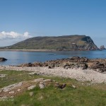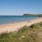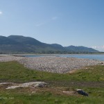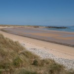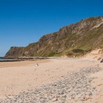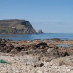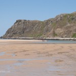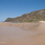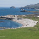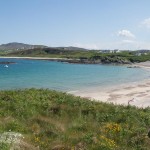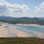 En continuant sur la R238, on arrive dans le gros village de Carndonagh (Carn Domhnach en gaélique), principale agglomération du nord de la péninsule, typiquement irlandaise avec sa place centrale (le Diamond) et ses maisons colorées. On peut y admirer une grande croix celtique, la plus ancienne d’Irlande (VIIème siècle), Donagh Cross, sous un abri près de l’église anglicane en venant de Ballyliffin. Le Inishowen 100 poursuit ensuite vers le village de Malin puis longe la superbe baie de Trawbreaga. Alors que la route tourne vers la droite à l’embouchure de Trawbreaga Bay, une petite route sur la gauche descend jusqu’à la magnifique plage de Five Fingers Strand, une de ces plages dont le Donegal a le secret : un interminable croissant de sable fin et blanc, des dunes couvertes d’oyats et de hautes falaises qui dominent le site. Un peu de monde le week-end, mais la plage est tellement grande qu’il suffit de s’éloigner un peu de l’accès à la plage pour se sentir seul au monde ! Un peu plus loin, le Inishowen 100 quitte la route principale et grimpe dans les collines (route étroite et raide, à réserver aux véhicules légers). On arrive à un parking avec une vue somptueuse sur Trawbreaga Bay, sans doute un des plus beaux panoramas d’Irlande. A votre gauche des prairies vertes avec des tâches blanches qui sont autant de vaches ou de moutons. A vos pieds la plage de Five Fingers Strand qui dévoile d’en haut un superbe jeu de formes et de couleurs. Et en face de vous Doagh Isle et les montagnes de la péninsule d’Inishowen (qui culmine à 615 mètres avec le Slieve Snaght) et au loin vers la droite Tullagh Point, Dunaff Head et Fanad Head.