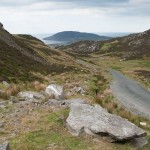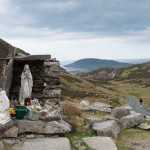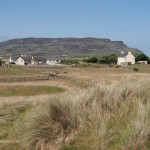 A la sortie de Buncrana, le Inishowen 100 quitte la R238 pour emprunter les petites routes qui longent la côte du Lough Swilly. Petit détour possible par Dunree et son fort qui abrite un musée militaire. Belle vue sur le Lough Swilly et Fanad Head et nombreuses marches possibles dans le coin. Le Inishowen 100 continue ensuite vers le nord et passe par le col de Mamore Gap. Côté sud, la route grimpe longuement en ligne droite vers l’étroit col entre les monts de Urris et Mamore. Au sommet, vue superbe sur le nord de la péninsule. Sur le bord de la route, des reliques religieuses et une fontaine dédiée à Sainte Eigne. Sans doute les croyants demandent-ils sa protection avant la vertigineuse descente en lacets de la façade nord du col ! La route du col descend ensuite vers le village de Dunaff, en bord de mer. Près du village, une petite route mène à une jetée au pied des belles falaises de Dunaff Head et à une longue plage couverte de galets de toutes les couleurs. Un peu plus loin, après la pointe de Tullagh, les prairies se terminent sur une superbe plage de sable fin à côté de laquelle un camping s’est installé. Le Inishowen 100 arrive ensuite dans le village coloré de Clonmany (Cluain Maine en gaélique). Le village accueille tous les ans au mois d’août un festival de musique. Les amateurs de mégalithes trouveront leur bonheur dans les nombreux dolmens et menhirs de la région. Le Inishowen 100 emprunte ensuite la R238 vers Ballyliffin et son golf 18 trous dominant la belle plage de Pollan Bay. Un peu plus loin, le Dooagh Famine Village est un Visitor’s Centre en plein air consacré à la Grande Famine qui a ravagé l’Irlande au milieu du XIXème siècle.