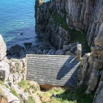Une des curiosités de Saint Govan’s Head est la Saint Govan’s Chapel, une petite chapelle construite à flanc de falaises ! La chapelle date du Vème ou VIème siècle mais a été restaurée au fil des siècles. Saint Govan était un prêcheur irlandais itinérant du VIème siècle. La légende raconte qu’un jour, alors qu’il était poursuivi par des voleurs, les falaises s’ouvrirent devant lui et le mirent à l’abri de ses poursuivants : il fit construire une chapelle à ce fameux endroit ! En-dessous de la chapelle, les eaux de Saint Govan’s Well (source aujourd’hui tarie) guérissaient les problèmes de peau et les douleurs aux yeux. Des marches taillées dans les falaises permettent de descendre jusqu’à la chapelle. On raconte qu’on ne peut pas compter le même nombre de marches en descendant et en montant, à cause d’un sortilège …