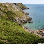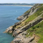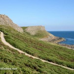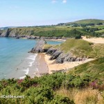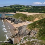 La côte sud de la péninsule compte plusieurs plages magnifiques, sans doute les plus belles du Pays de Galles. Ces plages se trouvent de part et d’autres de Southgate, petit village au sommet des falaises. Du village (parking payant, mais tarif plus raisonnable que dans d’autres endroits de la péninsule), un sentier côtier permet de rejoindre les plages. Vers l’est, en direction de The Mumbles, les plages de Pwll Du Bay, Brandy Cove et Caswell Bay. Vers l’ouest, en direction de Port Eynon, les plages de Pobbles Bay (la plus proche de Southgate, environ 20 minutes à pieds), Three Cliffs Bay, Tor Bay et un peu plus loin Oxwich Bay. Pour ma part, c’est vers l’ouest que j’ai marché quelques minutes pour découvrir un panorama magnifique et inoubliable !